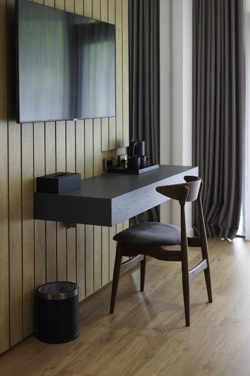 The room is decorated in a very elegant way.In its interior dominates the wood material, which "finishes" with finesse the floor and various surfaces of the rooom.